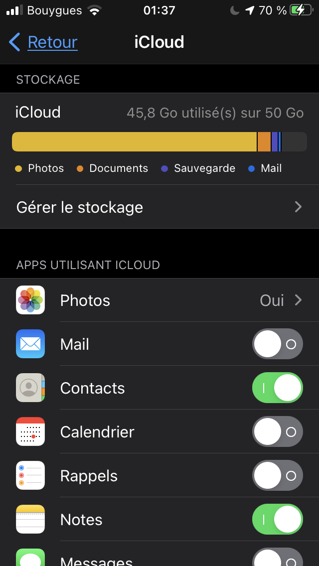 - activez iCloud pour tout ce qui est possible et faites une sauvegarde icloud