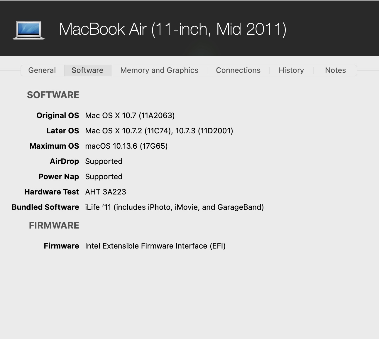 ton Mac est éligible, malgré que ses 2 Go de RAM, a : Maximum OSmacOS 10.13.6 (17G65) High Sierra