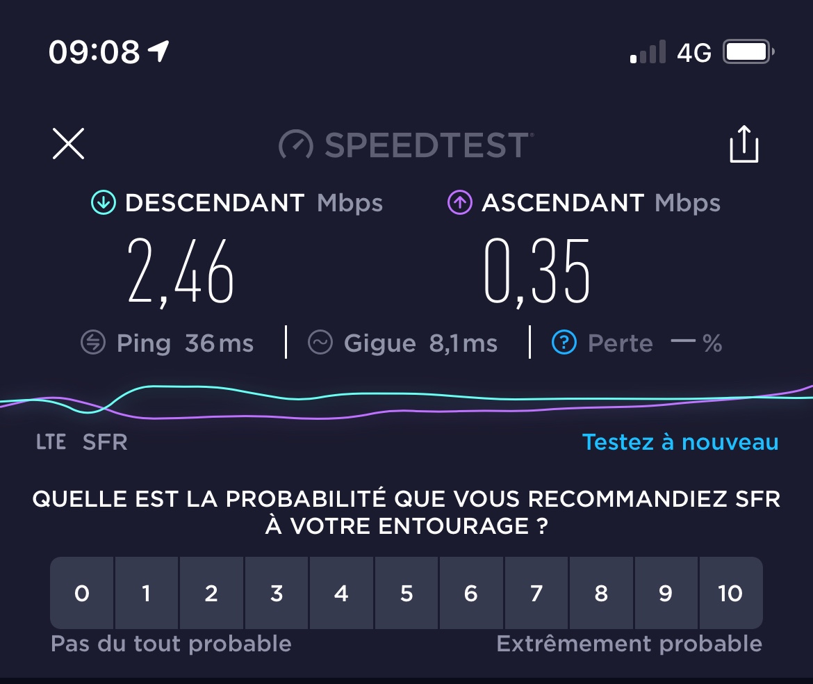 Bref, je ne rencontre que des ennuis. Les autres membres de ma famille sont eux aussi équipés d'iPhone mais de générations précédentes (et ils sont aussi chez SFR), pour eux tout fonctionne sans soucis, ils captent une 4G de qualité en permanence. C'est pourquoi je soupçonne que l'origine du problème vient plutôt de mon téléphone que du réseau environnant.