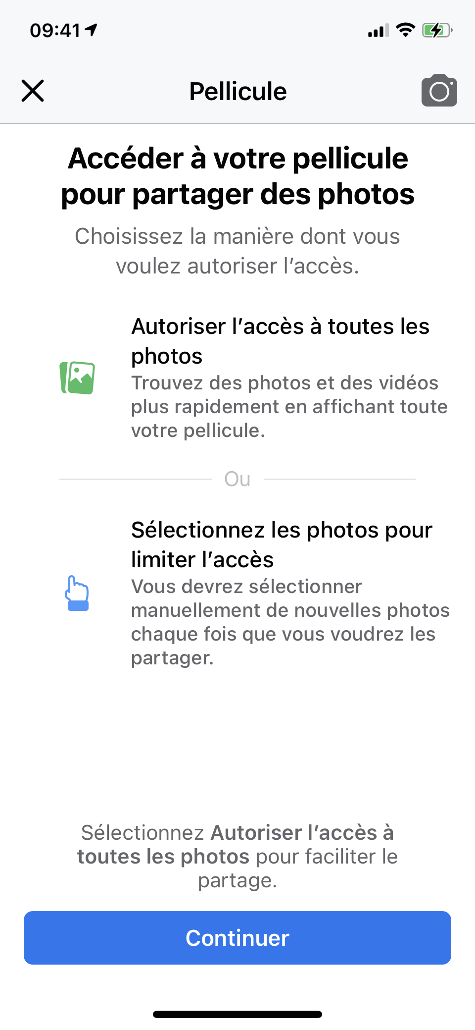 Je ne peux pas accéder à mes photos sur mon téléphone ( stockage sur iPhone ou Dropbox peux importe) lors d’une publication sur Facebook, malgré le faite que le partage des photos et activé. Comment faire? Merci