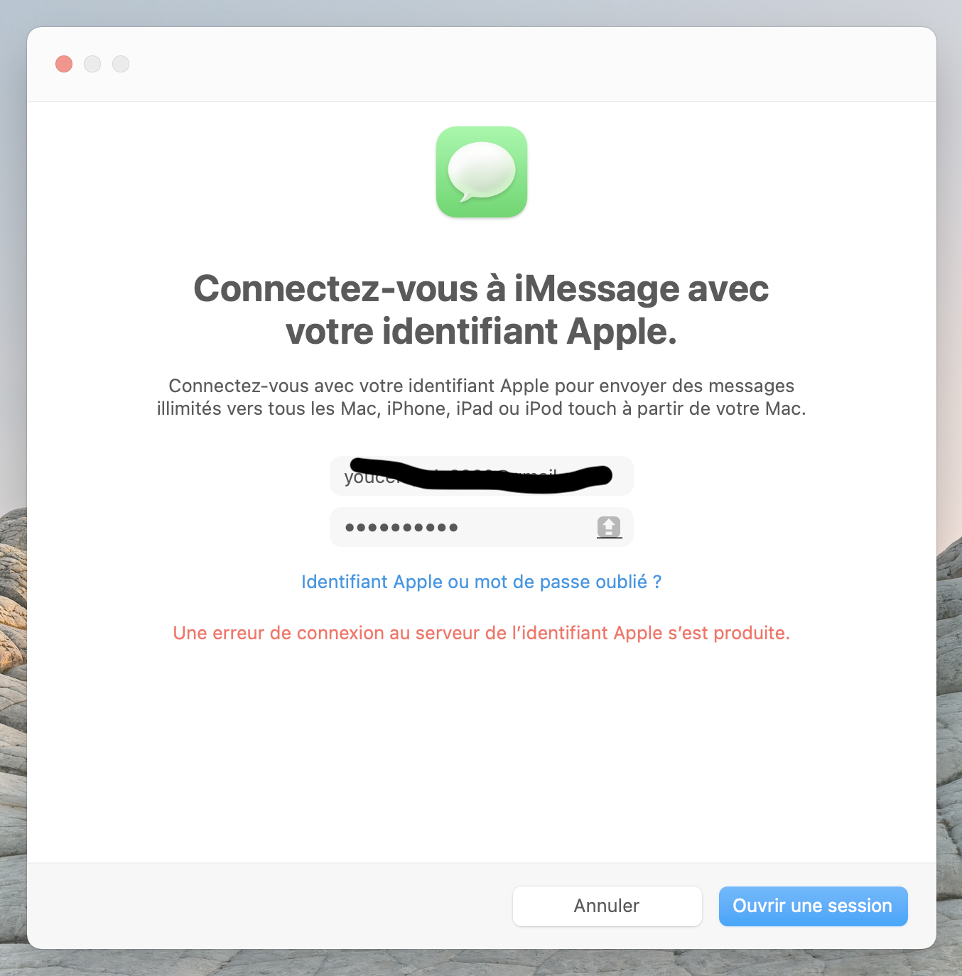 Impossible de se connecter à Face Time et Messages sous Big Sur