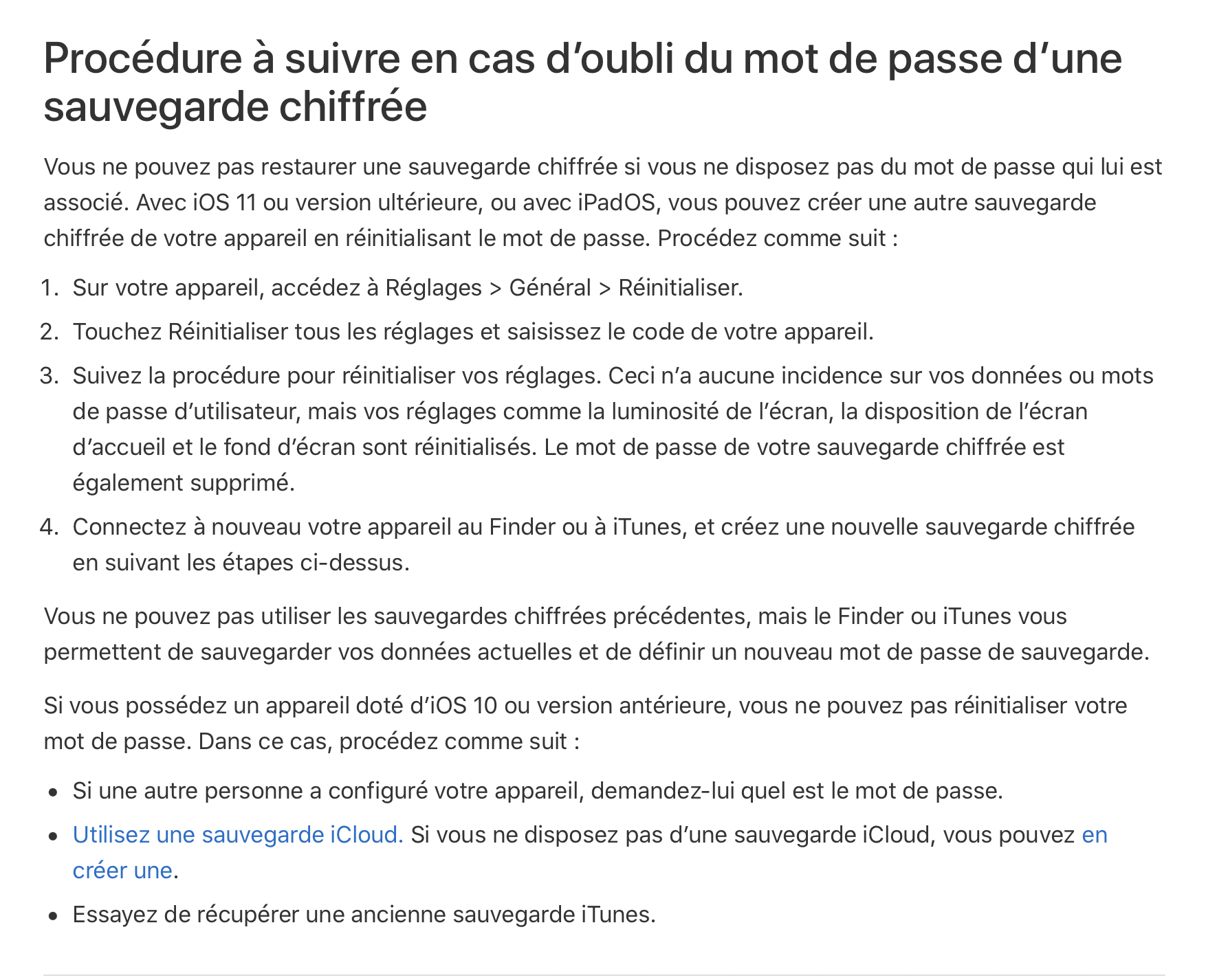 Je ne connais pas mon mot de passe de sauvegarde iTunes