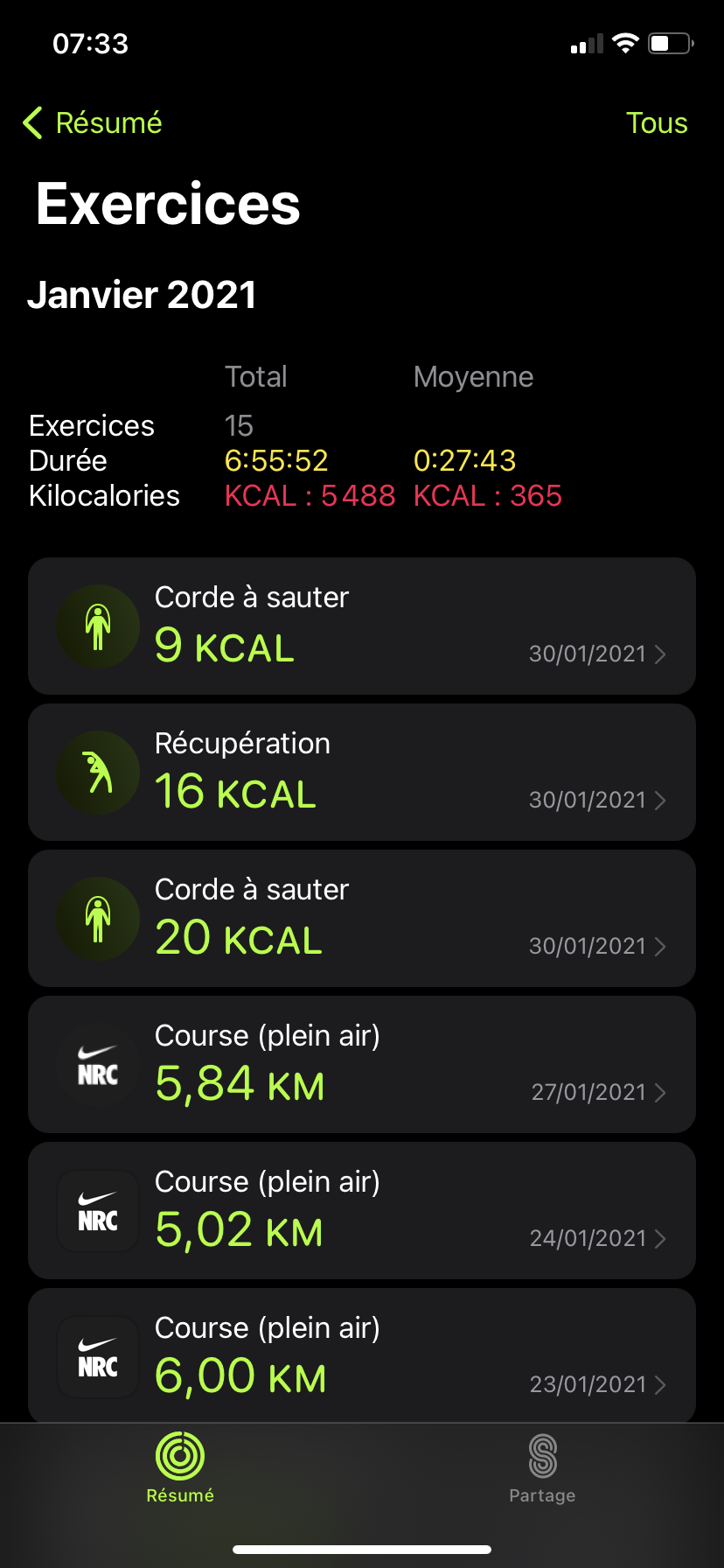 J ai problème avec l Application Forme, depuis Dimanche 31 janvier elle resté bloquée , j ai fait des footing au mois de Février et aucune donnée de février est marqué . Quand je commence une activité sportive aucune ne s enregistre dans les donnés.