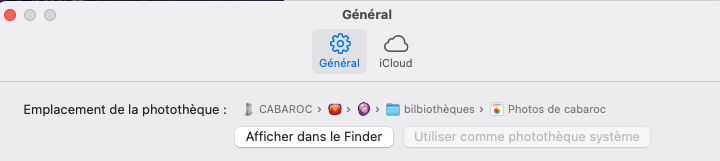 je souhaite faire de la place sur mon disque interne (Macintosh HD), sur mon Mac pro. On m'indique que Photos occupe 133 Go du stockage or ma bibliothèque photos est contenue sur un disque dur externe (Cabaroc). Et la bibliothèque photos de mon disque interne est quasiment vide.
