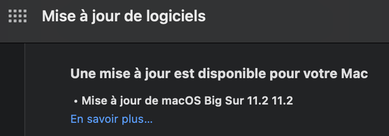 Mon Mac m'indique qu'une nouvelle version de Big Sur est disponible.
