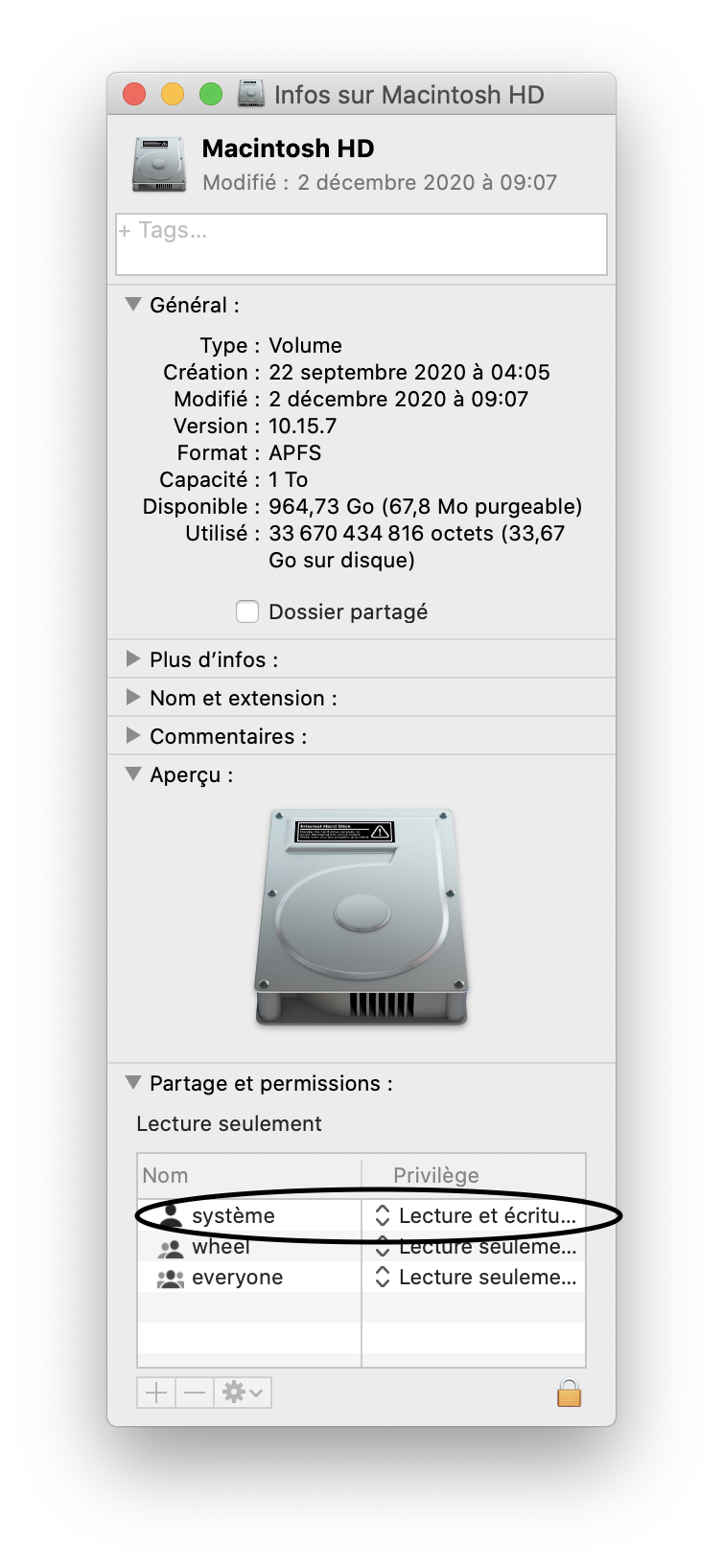 Peut-être que le problème vient des permissions que tu as sur les disques durs externes. Il est possible que les permissions ne soient prévues que pour la lecture et pas pour l'écriture sur les disques. Va dans le Finder > Sélectionne ton disque dur externe > Clic secondaire et choisis Lire les informations. Tu auras une section Partage et Permissions qui te donnera qui peut écrire sur ton disque (en gros supprimer ou copier des fichiers). Il faut définir Lecture et écriture dans la partie Système si ce n'est pas déjà fait et qu'il n'est écrit que Lecture seulement.