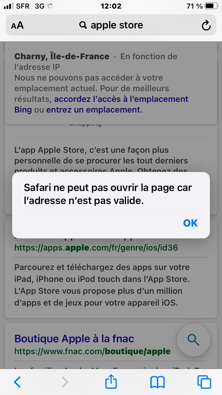merci de me répondre ,mon iPhone est 6 s reconditionné. J’ai voulu modifié le navigateur Google (trop de suivi) pour un autre .après j’ai voulu mettre qq jeux sur mon iPhone et rien .a chaque fois que je veux mettre une appli ,on inscrit sur l’écran :safari ne peut ouvrir la page ?