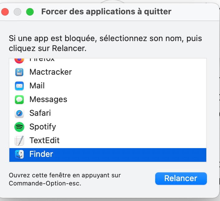 Finder bloqué sur Mac