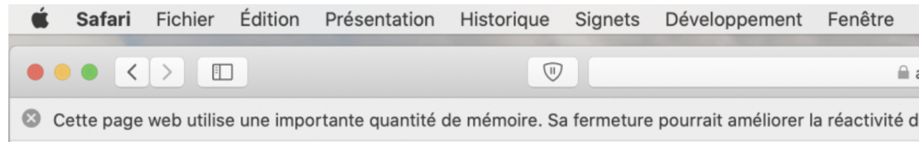 Je rencontre un problème quand je regarde des vidéos sur Safari,"Cette page web utilise une grande quantité de mémoire" et ceux de manière régulière, aboutissant à la fermeture de Safari.