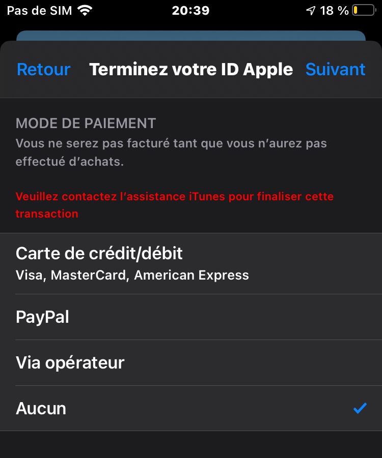 Bonjour, je n’arrive pas à installer ma première application à cause d’un bug alors que toutes les infos sont inscrites. J’ai fait dans les deux cas avec carte bancaire et en mettant : Aucun mais sa ne marche pas.