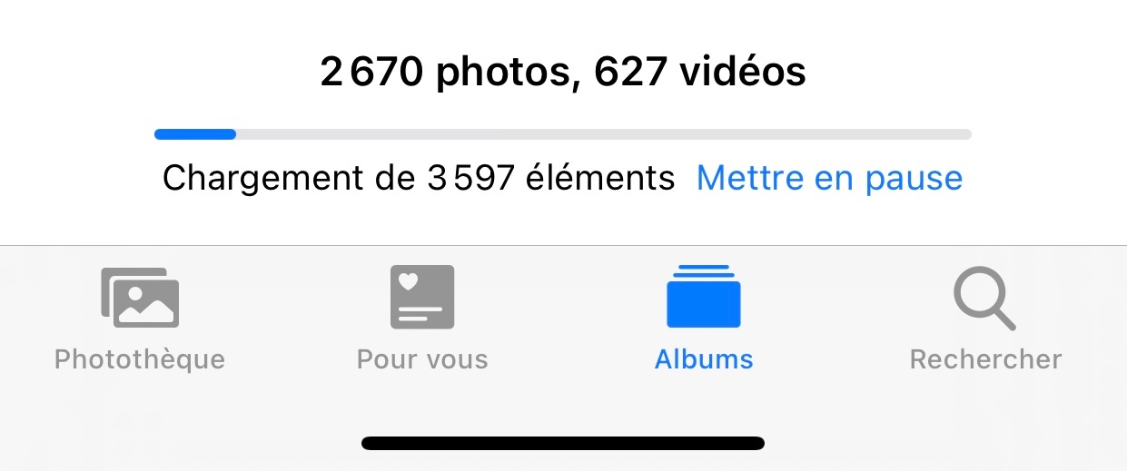 J’ai activé iCloud pour synchroniser mes photos dessus. Depuis plusieurs jours les photos synchronisent très très très doucement et toutes les heures le chargement se met en pause. Je suis à chaque fois obligé de le relancer mais en 2 jours j’en suis qu’à 6% de synchronisation (pour environ 3500 photos/vidéos).