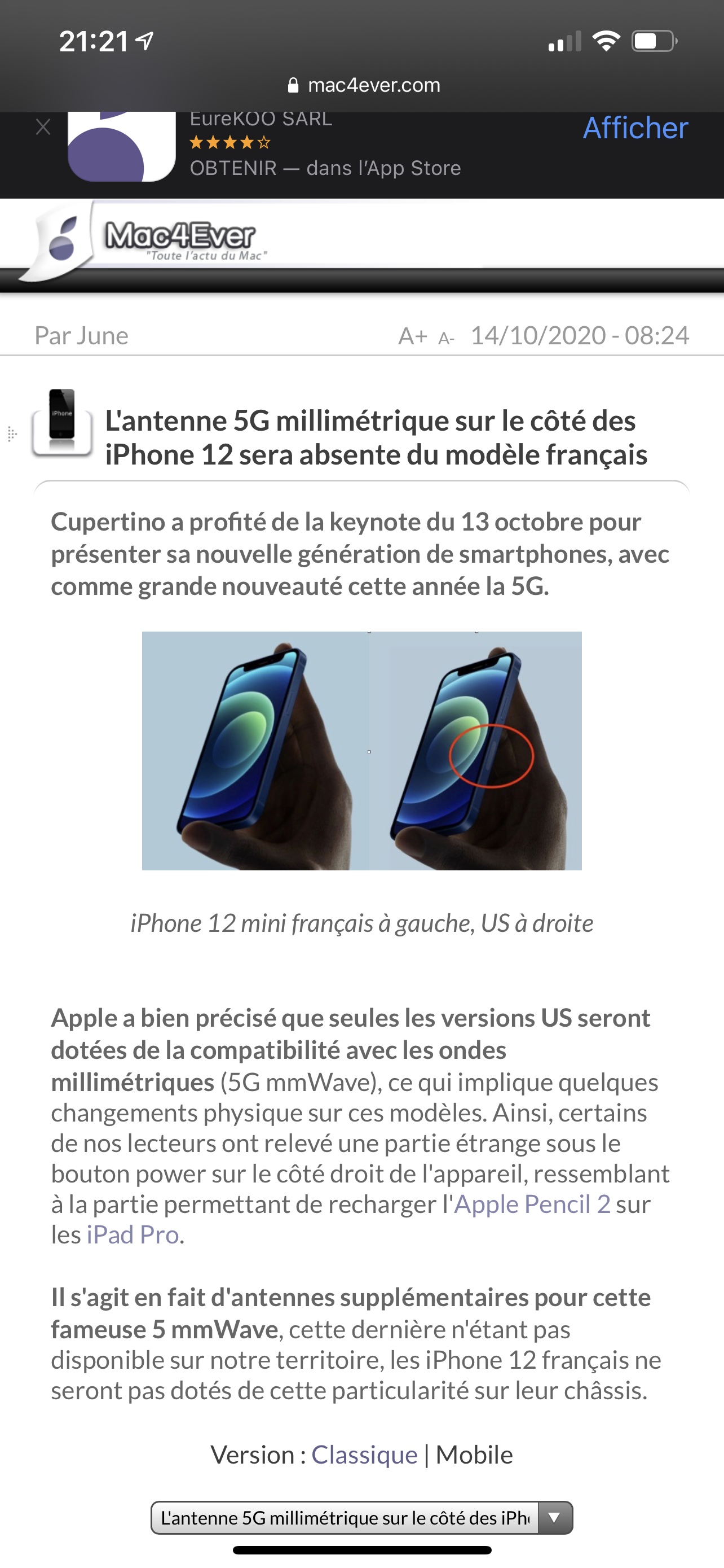 Sur toutes les vidéo que je regarde les ytuber on le capteur 5G sur le côté j’ai l’iPhone 12 pro max acheter sur l’Apple store et je me demande pourquoi je n’en ai pas.