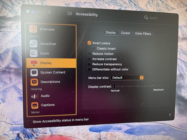 Je suis d’accord avec danieldeannecy, je pense que tu dois aller dans Accessibilité et ensuite dans Affichage > Inverser les couleurs.