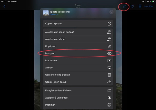 Mais il est possible par contre de la masquer de votre Photothèque de l’iPhone.