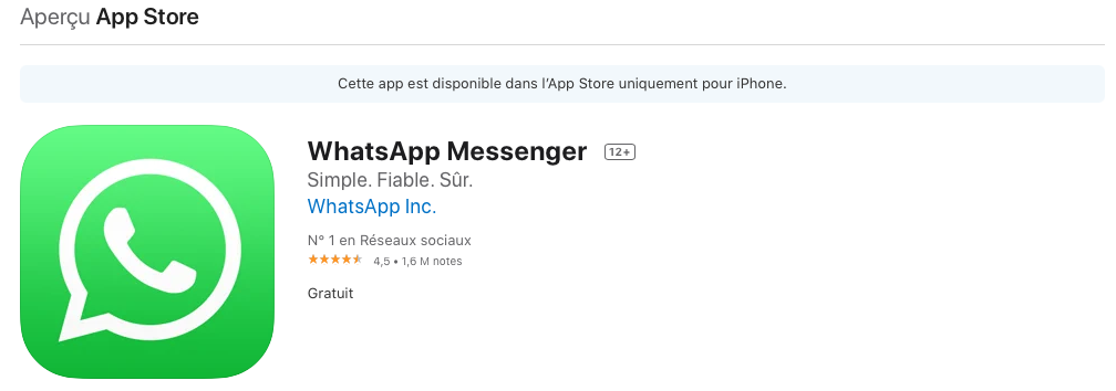Je viens de vérifier dans l’App Store et sur le site officiel de WhatsApp et ils indiquent que l’app WhatsApp n’existe que sur iPhone.