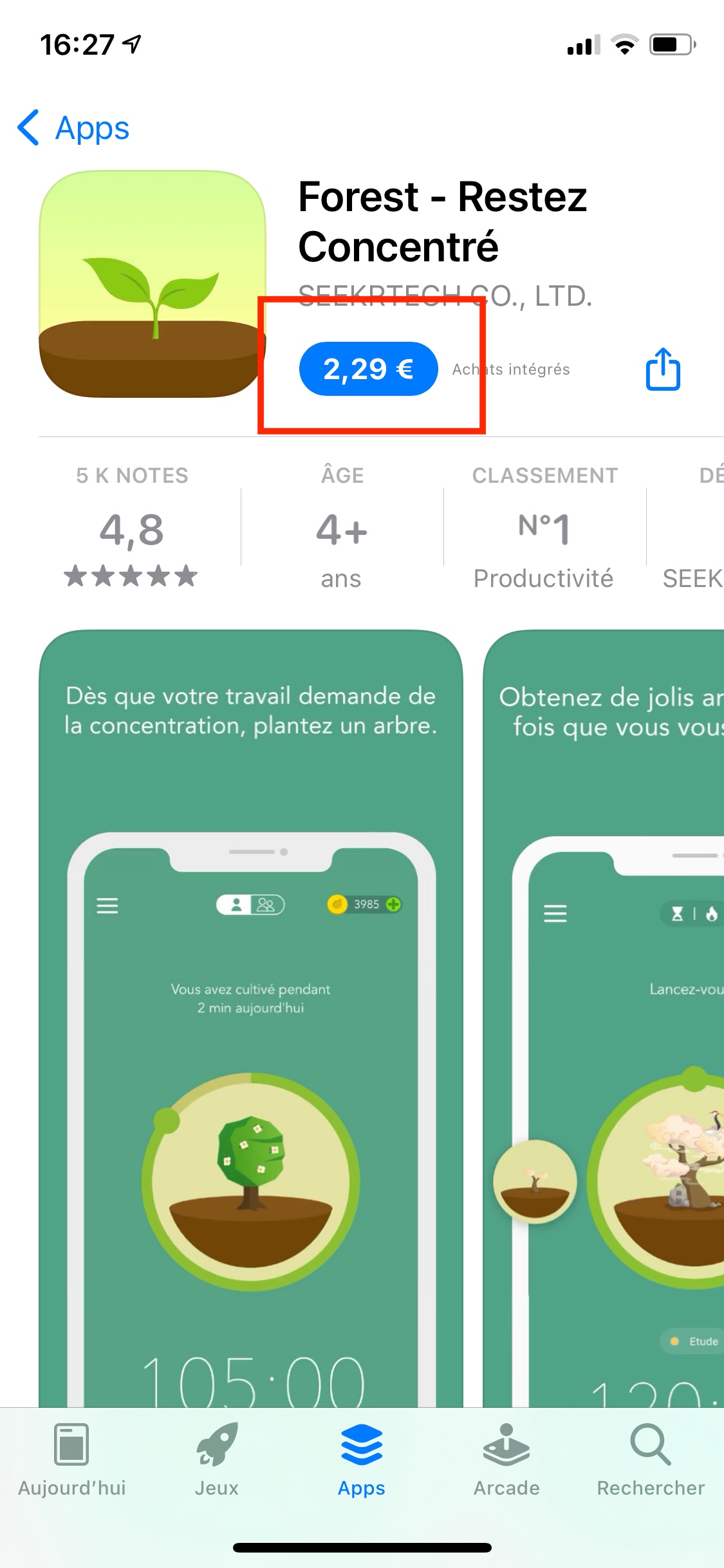 C'est très simple : soit le prix est directement affiché sur la fiche de l'app, comme ceci :