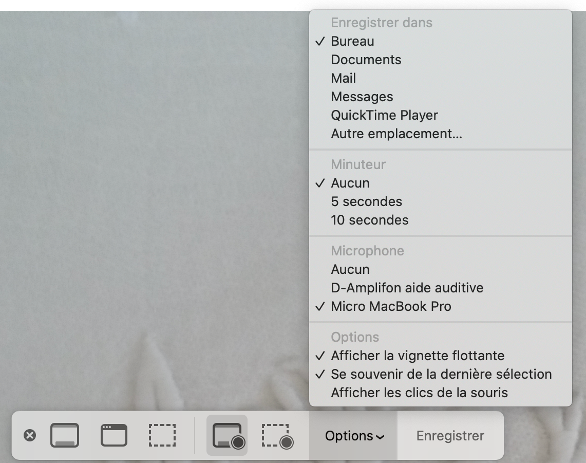 A partir de Mojave, le raccourci clavier cmd-maj-5 ouvre une petit bateau en bas de l'écran, permettant :