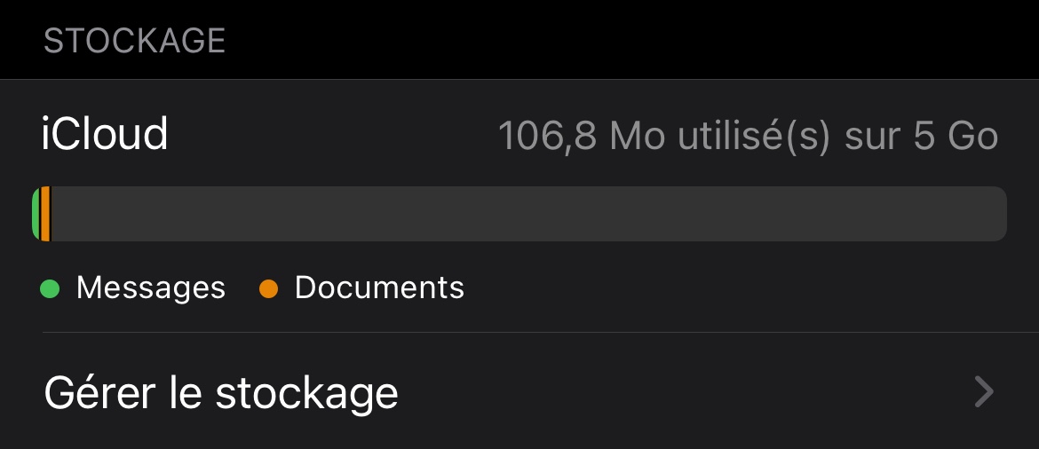 Avant toue chose je me dois de vous préciser quelques informations. La barre vous indiquant votre espace iCloud (avec ce qu'il reste comme espace disponible), n'est synchronisé qu'avec votre compte iCloud. Cette barre de stockage ne reflète en aucun cas le stockage de votre iPhone.