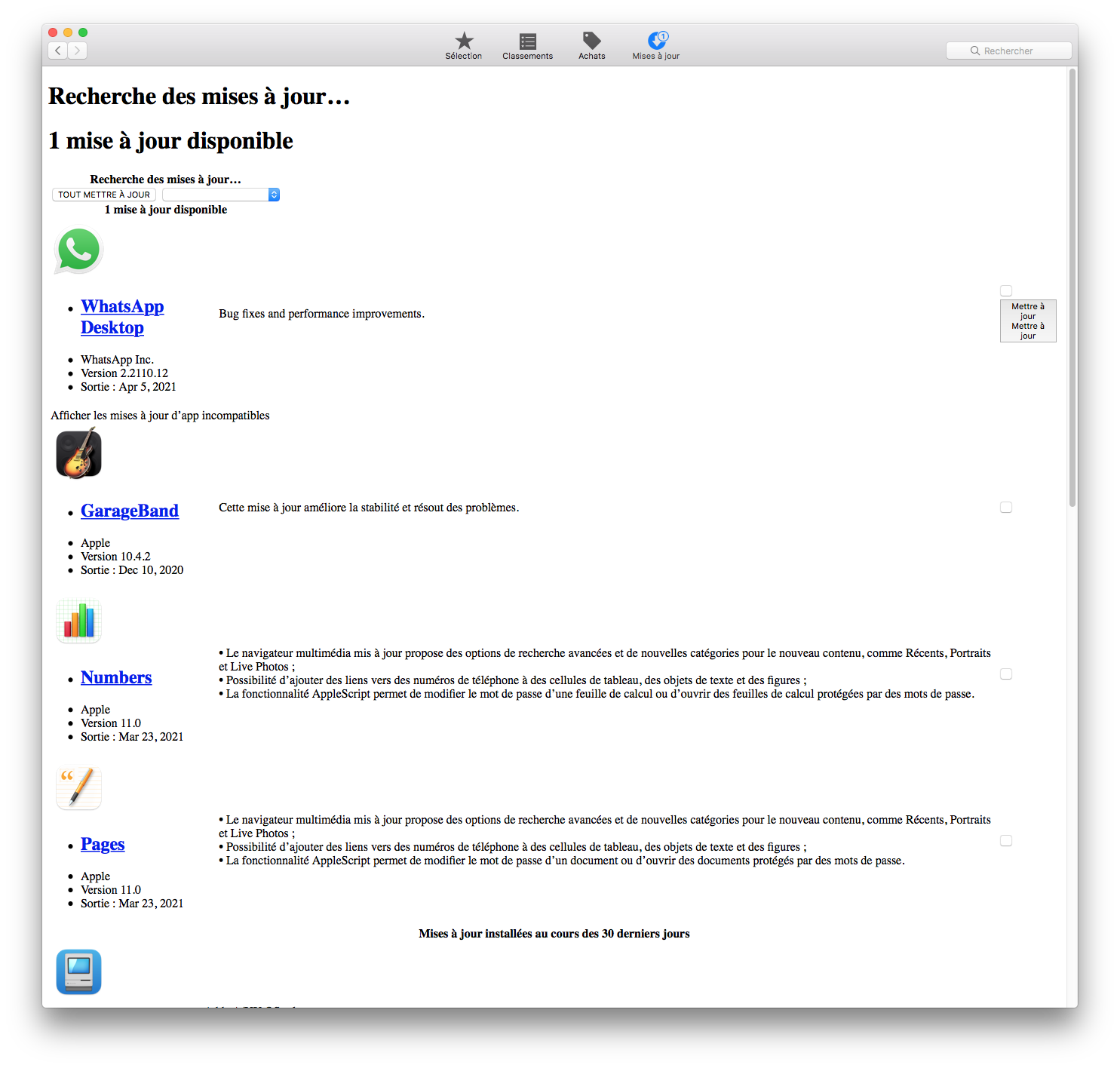 Problème d'affichage de l'onglet de mise à jour de l'App Store