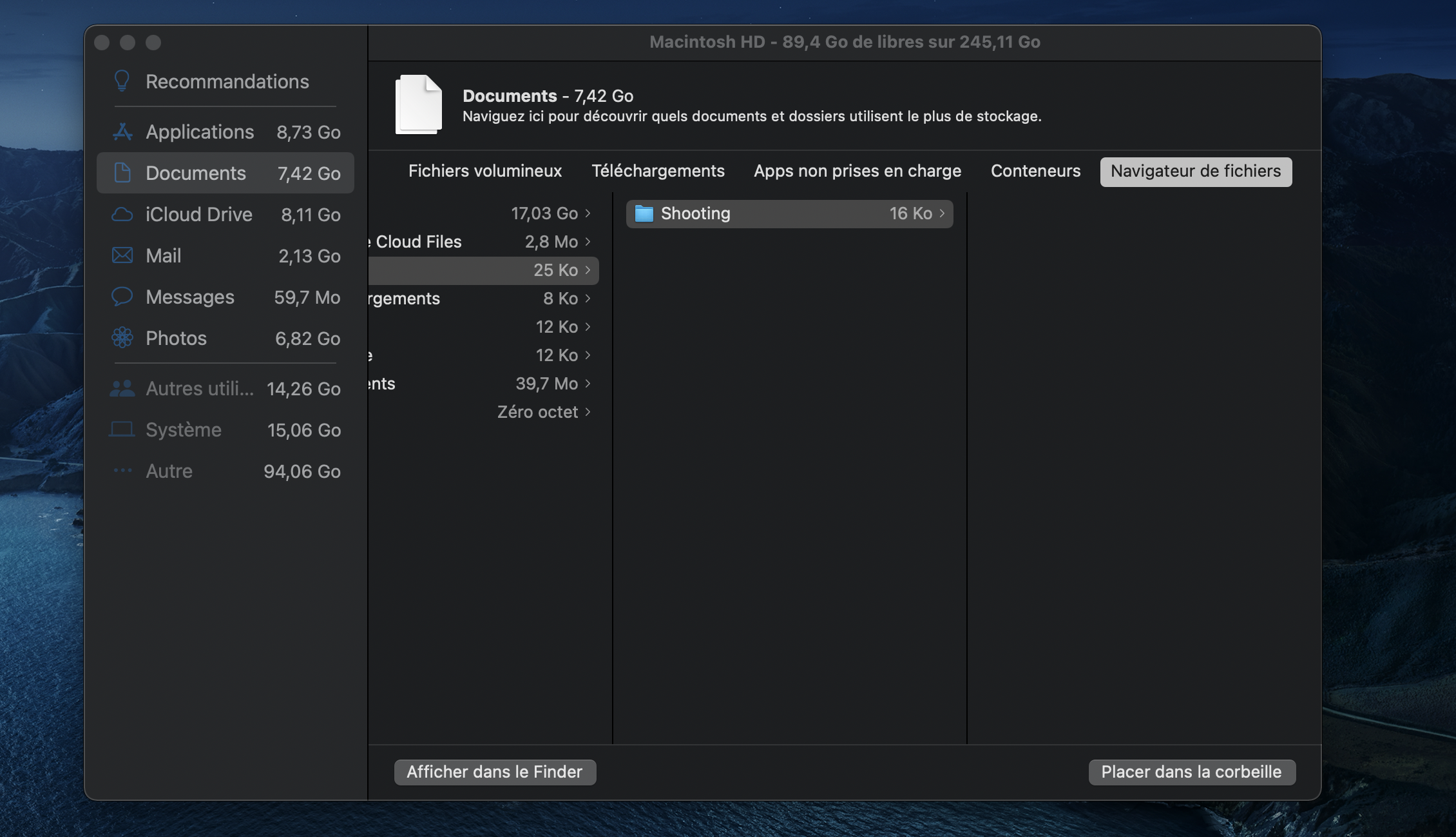 Si ce volume de "autres" est apparu à l'occasion du transfert de données d'un ancien Mac vers votre nouveau Mac M1, attendez quelques jours. Cela peut fortement diminuer tout seul au fur et à mesure de l'utilisation du nouveau Mac.