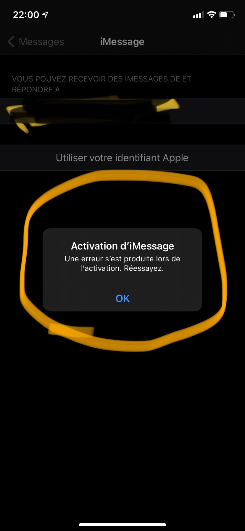 Message d'erreur lors de l’activation d’iMessage sur iPhone