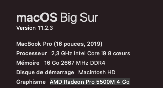 J'ai actuellement réinitialisé le NVRAM, SMC, réinstaller Big Sur, et reformâté mon MacBook Pro format usine ===> rien n'a changé...
