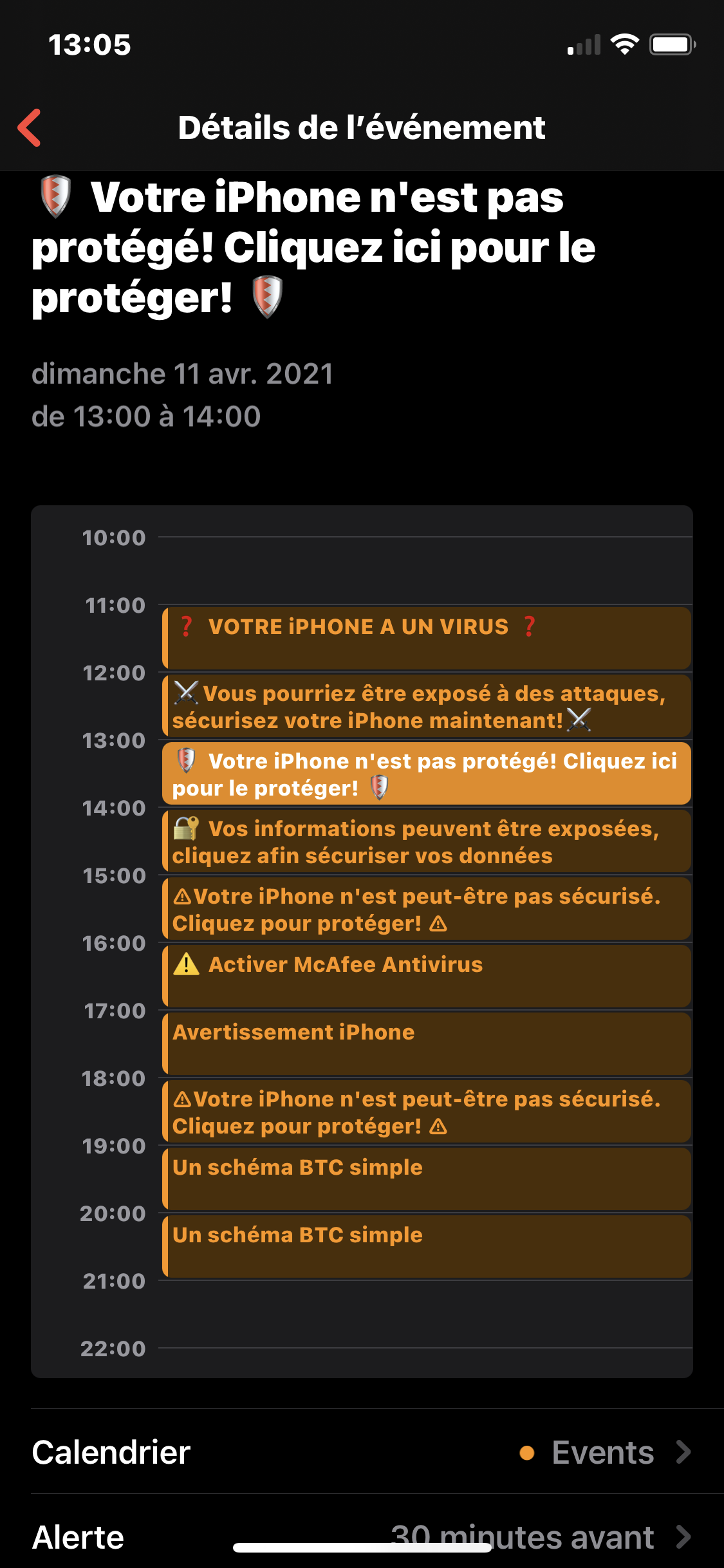 Bonjour je voudrais savoir ça me met un message dans mon calendrier que J’ai des virus es ce que C’est grave