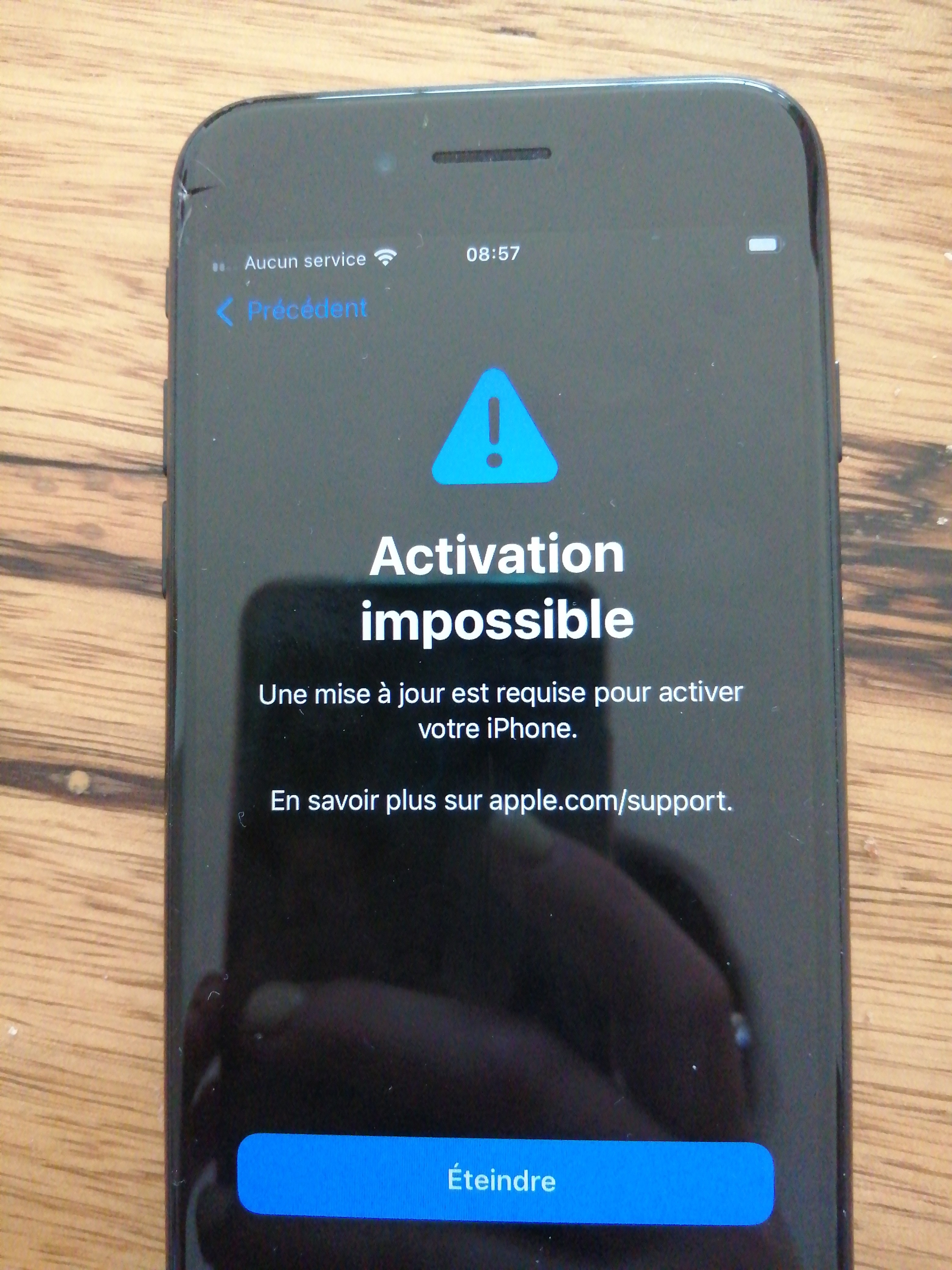 J'essaye de remettre en servie l'iphone 7, cependant lorsque que j'essaye de le configurer il m'indique "activation impossible, une mise à jour est requise pour activer votre iPhone". Le soucis est que je n'arrive pas à faire la mise à jour... Que faire ?