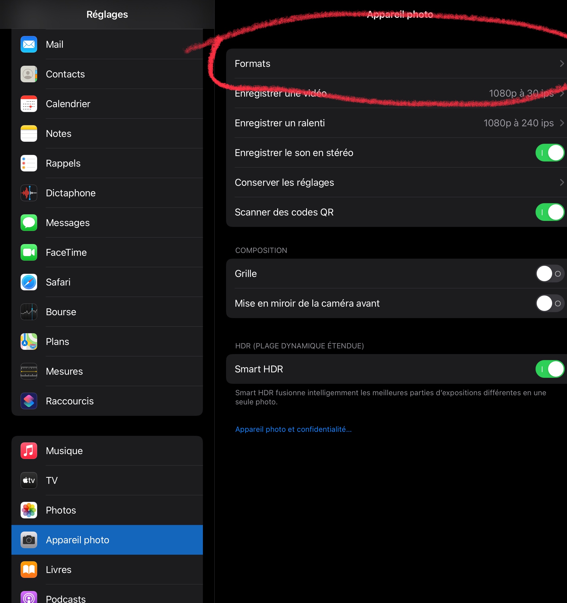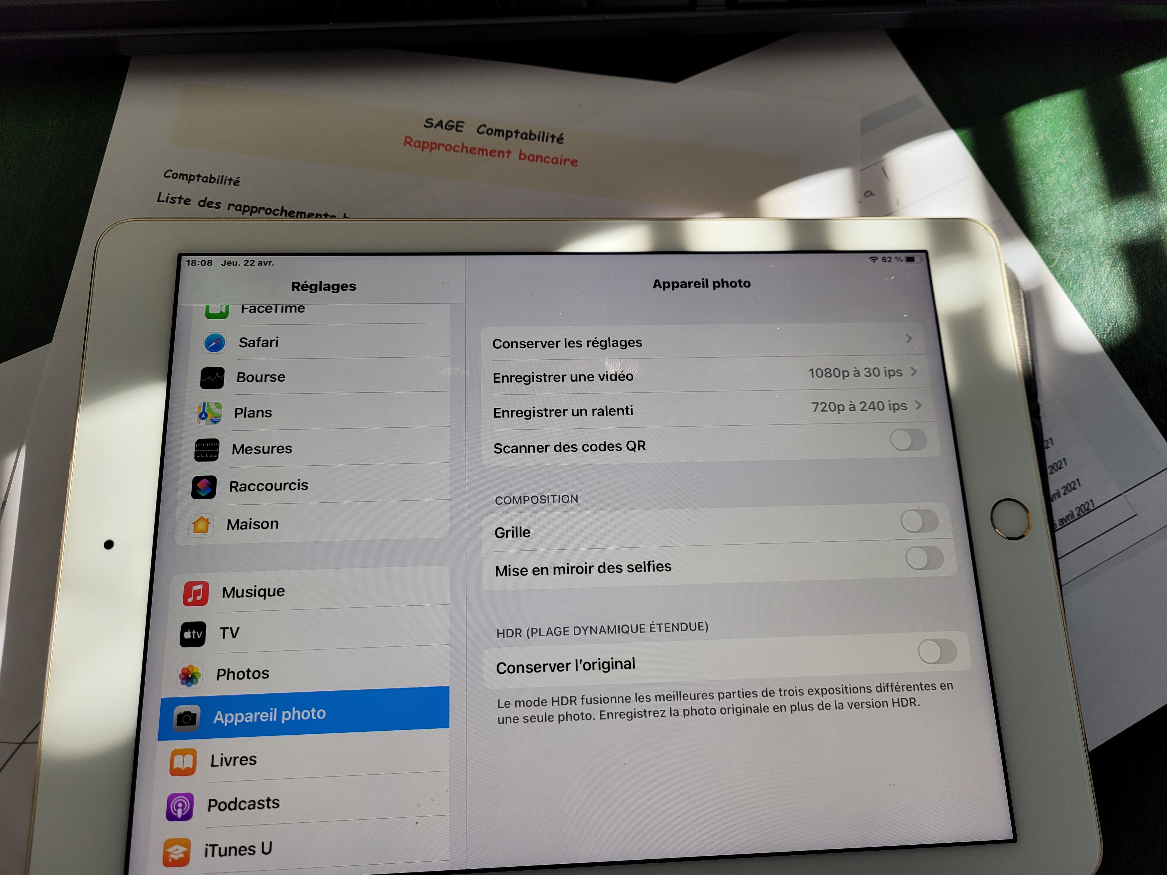 Modifier la résolution de l’appareil photo de mon iPad