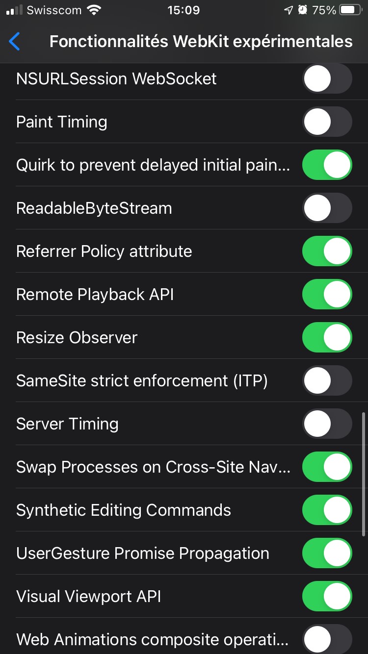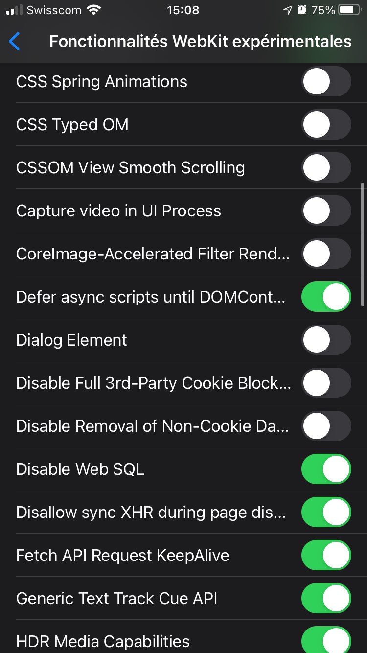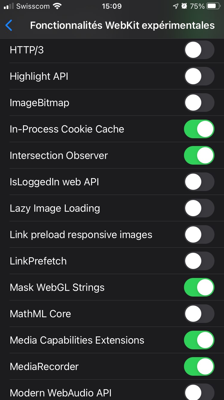Bonjour, quels sont les cases à cocher et décocher dans webkit expérimentales features ? Je n’arrive pas à remettre le bon réglage du coup j’ai tout cocher et mon internet bug... merci