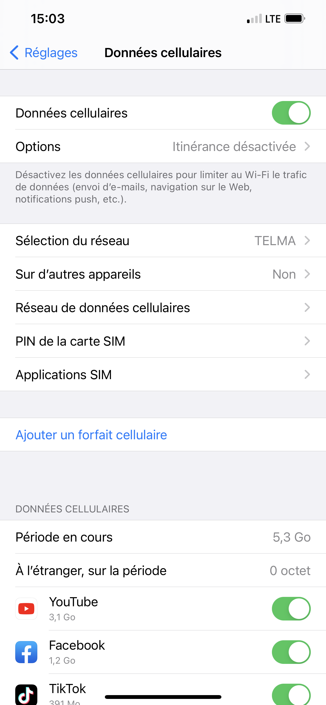 j'ai suivi les instructions que vous avez partagées mais je ne trouve pas le*partage de connexion* dans l'app* données cellulaires*