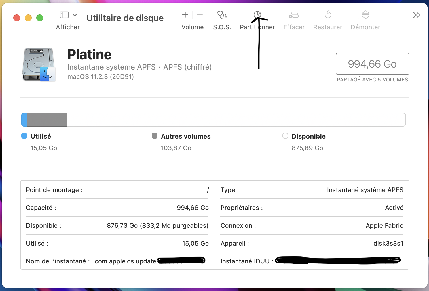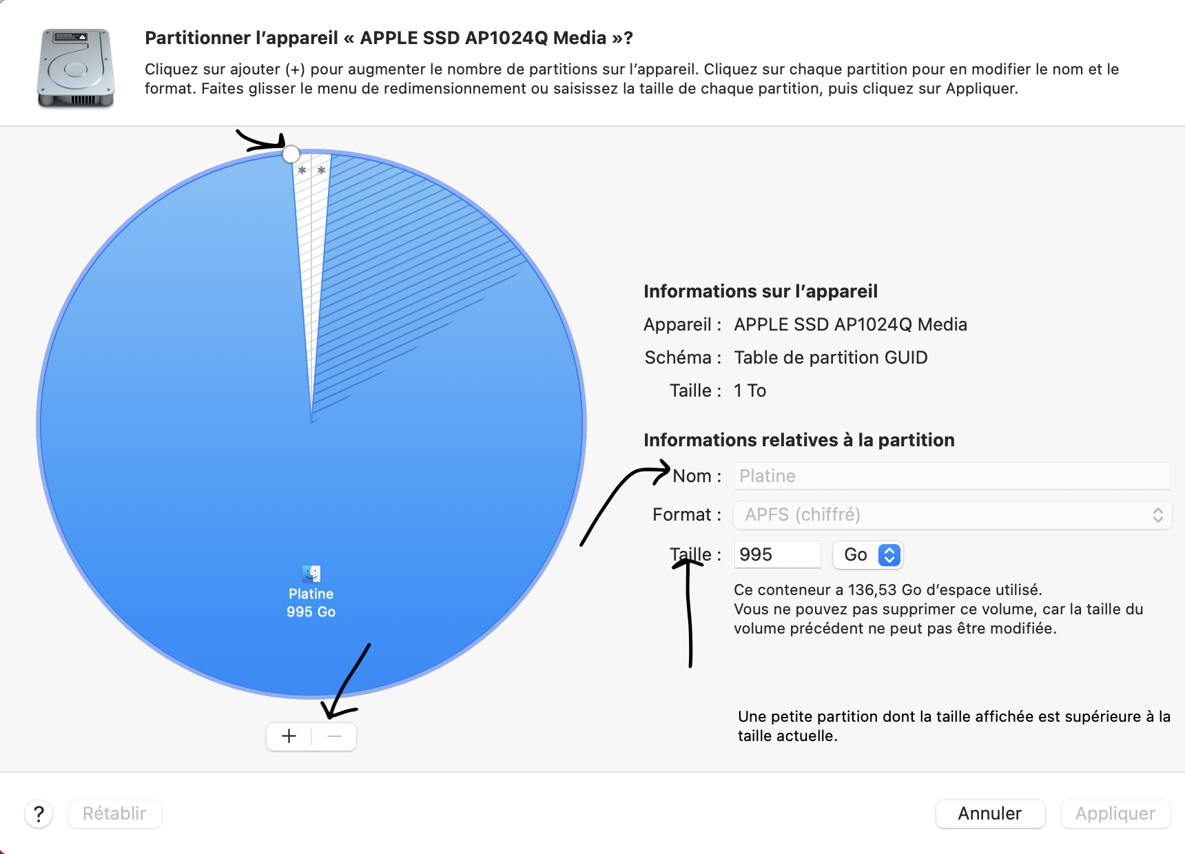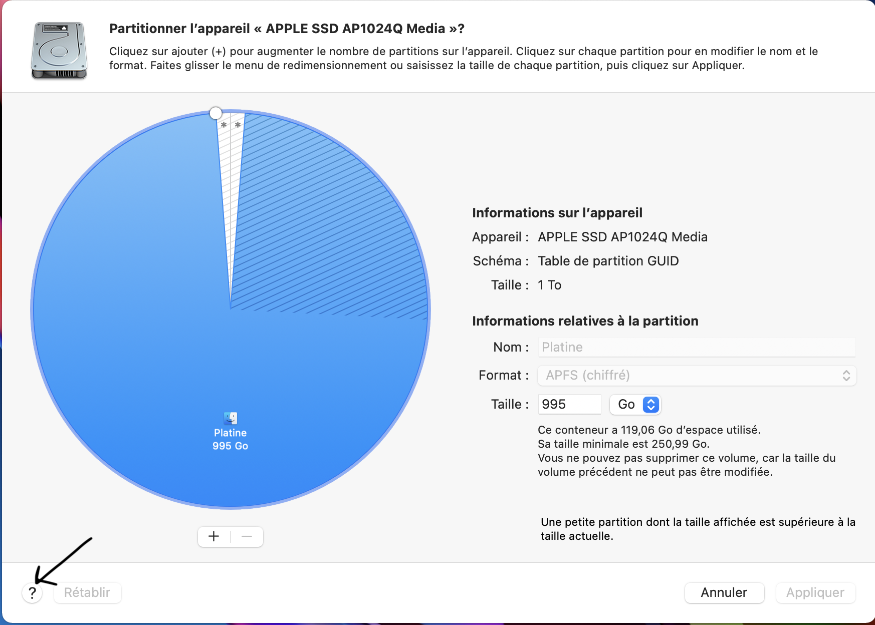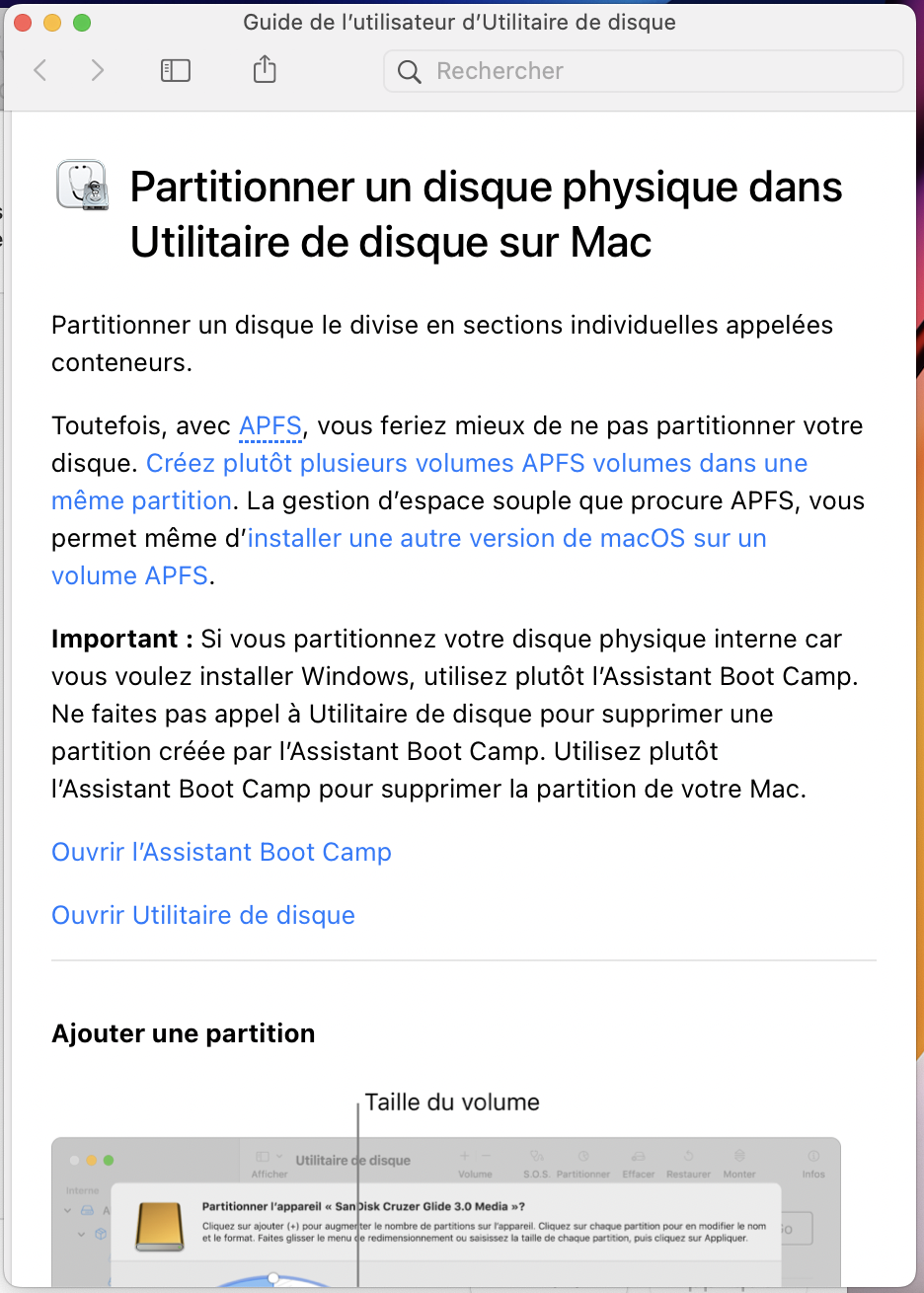 Comment puis-je faire avec l'utilitaire disque? Je ne trouve aucune fonction explicite