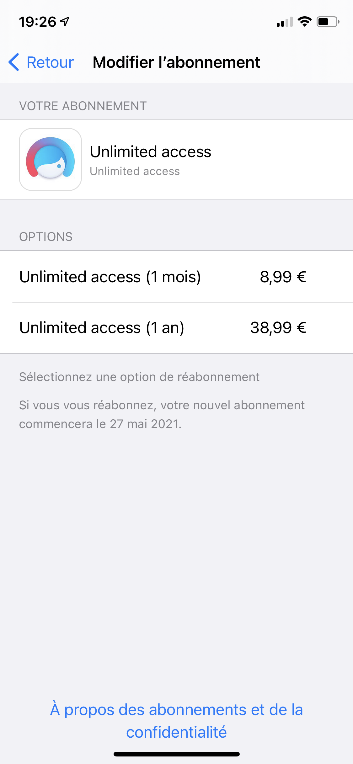 Je me suis abonnée malencontreusement à une application payante, j’ai résilié mais dans « Abonnements » l’application est toujours là, vais je être débitée ? merci !