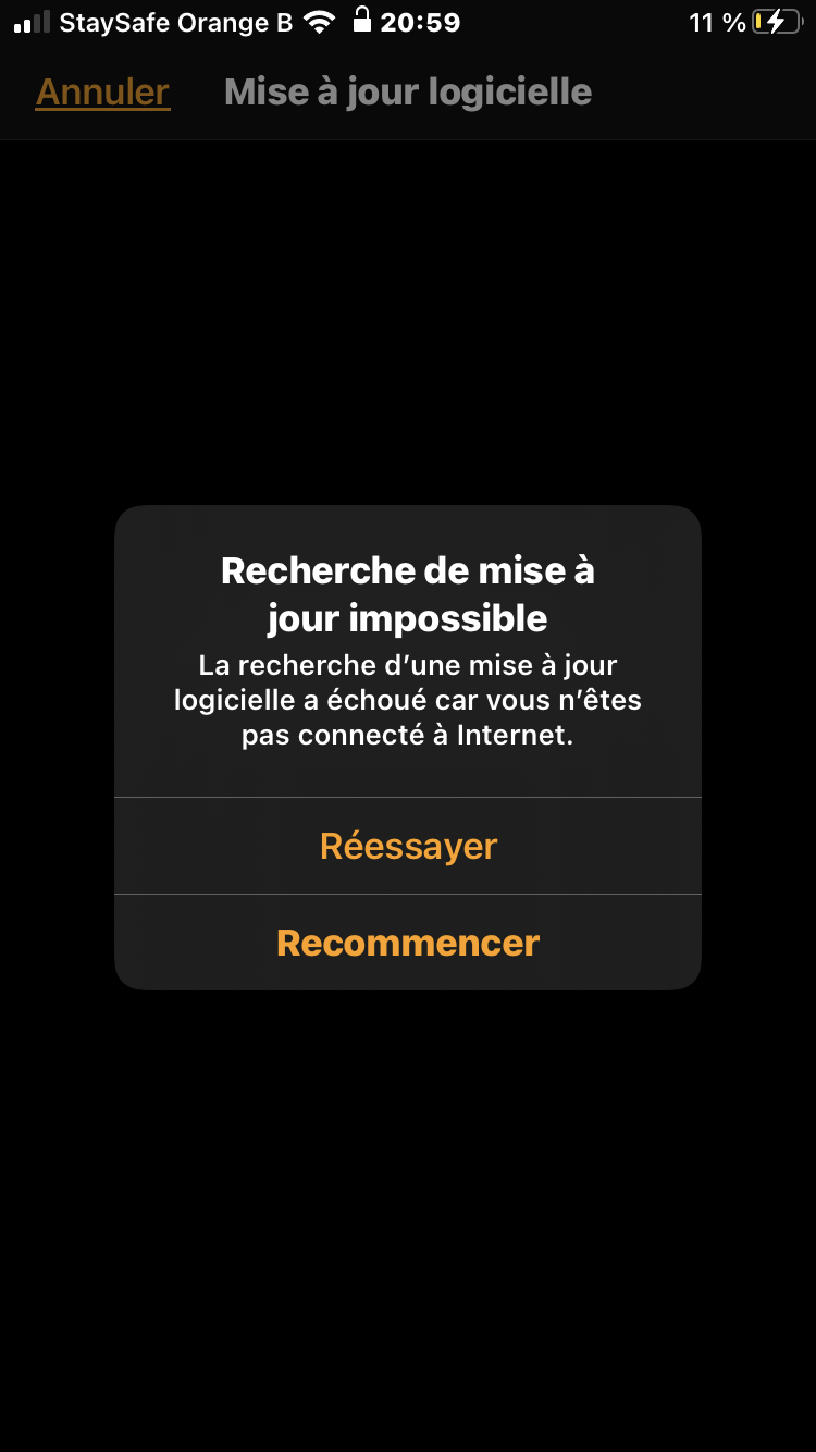 bonjour, je n arrive pas a telecharger la dernière mise a jour de l apple watch! il me dit que je ne suis pas connecté a internet or que je le suis