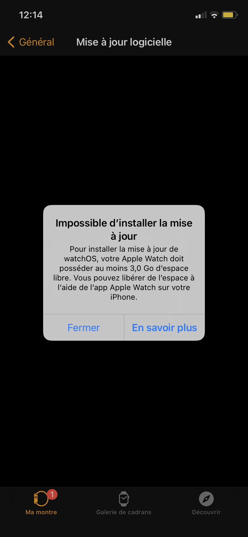 Impossible d’installer la mise à jour sur mon Apple Watch