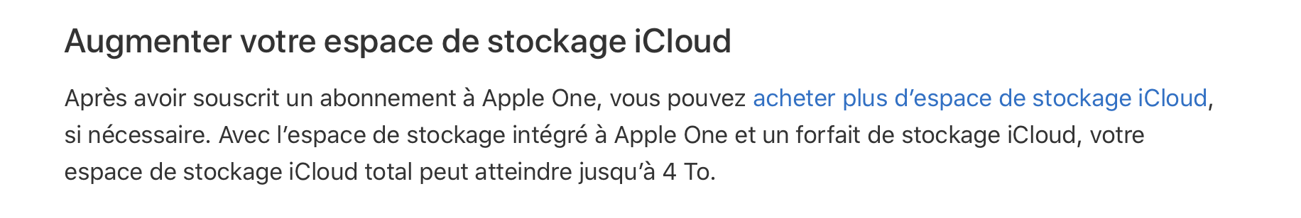 Merci, cependant sur le site d'apple, ils indiquent que lorsque l'on a Apple One, Ono peut souscrire un hébergement jusqu'à 4To...