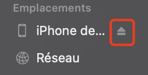 Éjection de votre iPhone depuis le Finder sur Mac.