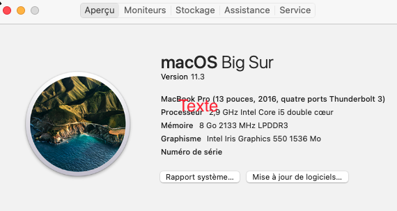Quel est le modèle exact de ton Mac ? Quelle année ? Quel Disque interne capacité ? Tu peux obtenir l'info dans la pomme : > À propos de ce Mac.