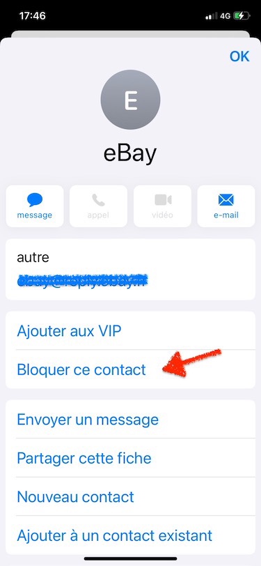 Clique à nouveau sur l'expéditeur en bleu, tu arrives sur la page d'information. Choisi Bloquer ce contact.
