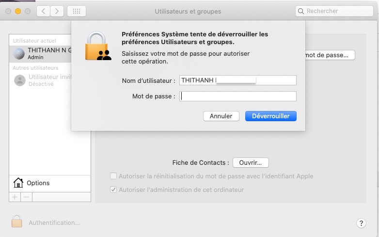 pour changer ce mot de passe, vous devez vous rendre dans la session prioritaire de votre Mac.
