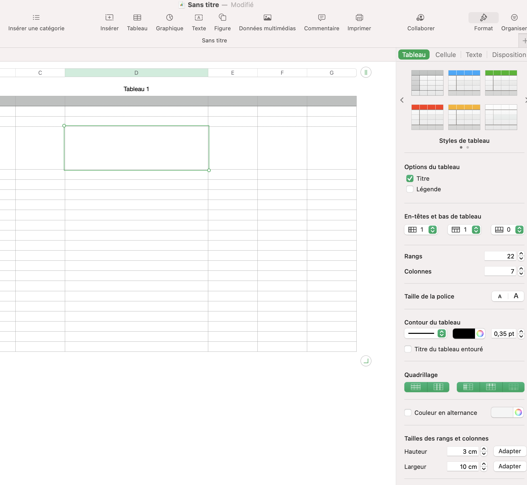 Je bute sur les dimensions d'une cellule et le résultat à l'impression.