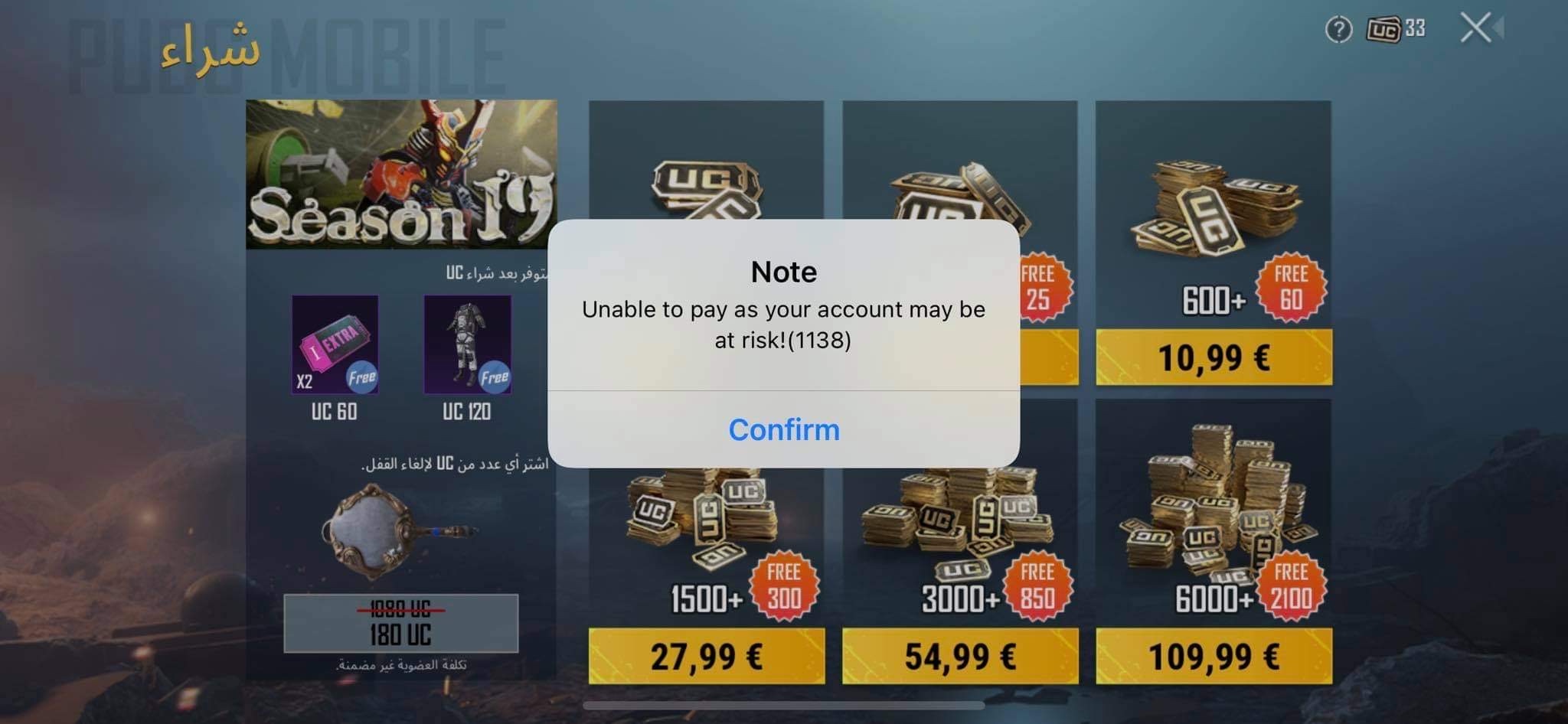Voici la traduction du message : incapable de payer car votre compte peut être à risque.