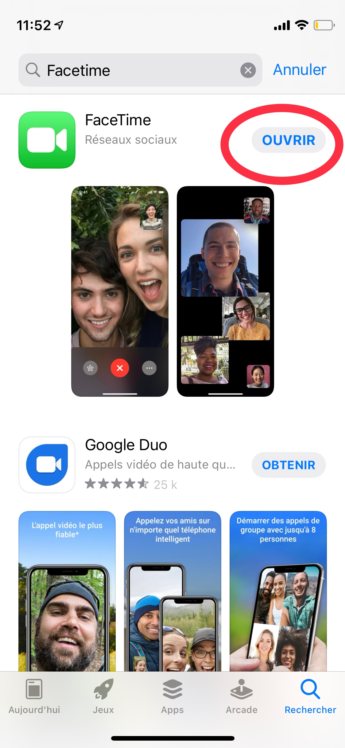 L’application FaceTime est une application Apple Inc. qui vous permet d’appeler en mode vidéo et le cas échéant, en mode audio. Cette app est installée par défaut sur l’iPhone mais en cas de suppression accidentelle, elle peut toujours être téléchargée de nouveau depuis l’App Store. Il vous sera demandé votre Apple ID ainsi que votre MDP. Si vous l’avez oublié, rendez-vous sur https://support.apple.com/fr-fr/HT201487