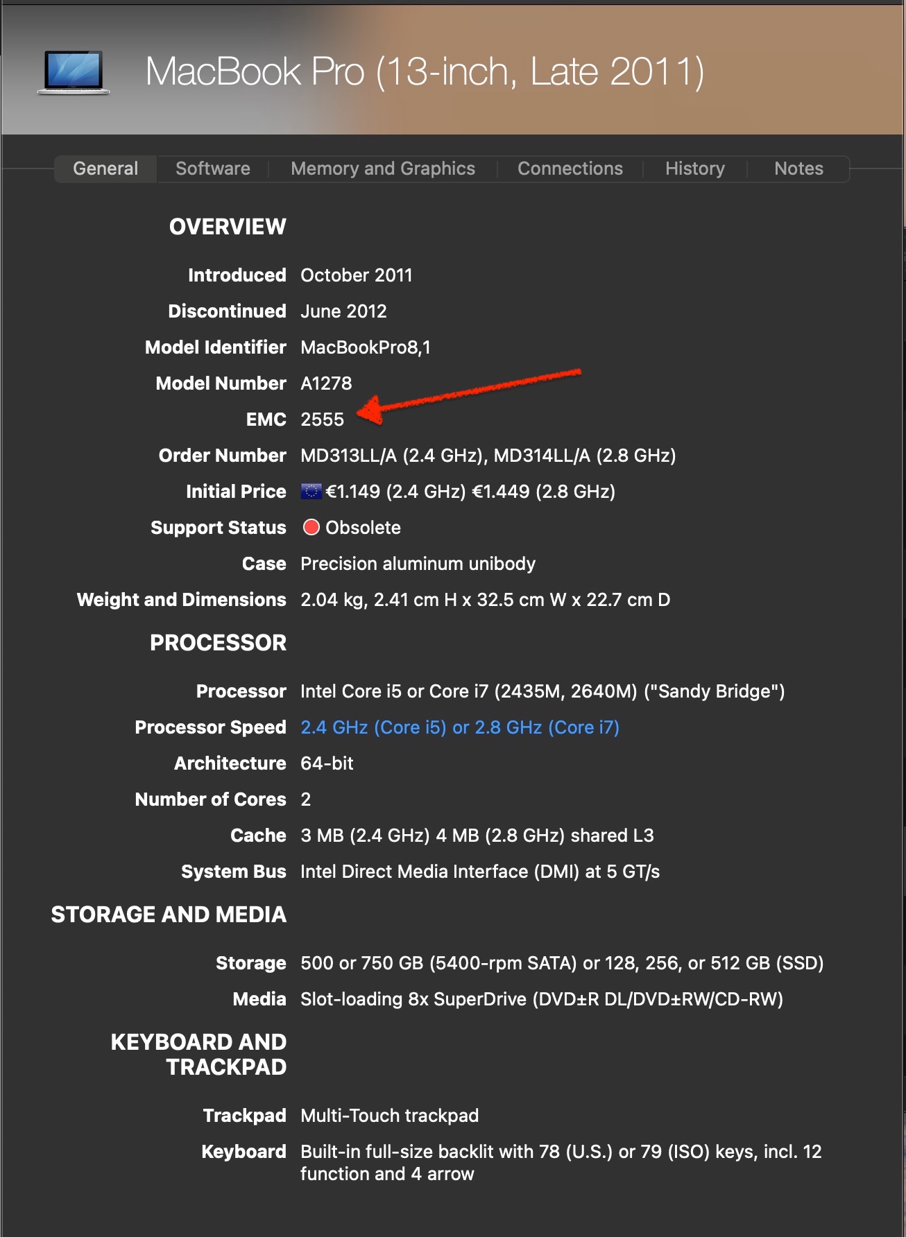 comment retrouver le numero emei d'un macbookpro , version 2011