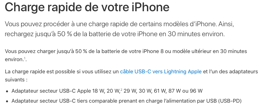Est-ce qu'il y a une puissance à ne pas dépasser pour charger un iPhone 12 ? J'ai actuellement un adaptateur secteur avec une puissance 61W, est-ce trop fort et cela pourrait-il endommager la batterie de mon téléphone ?