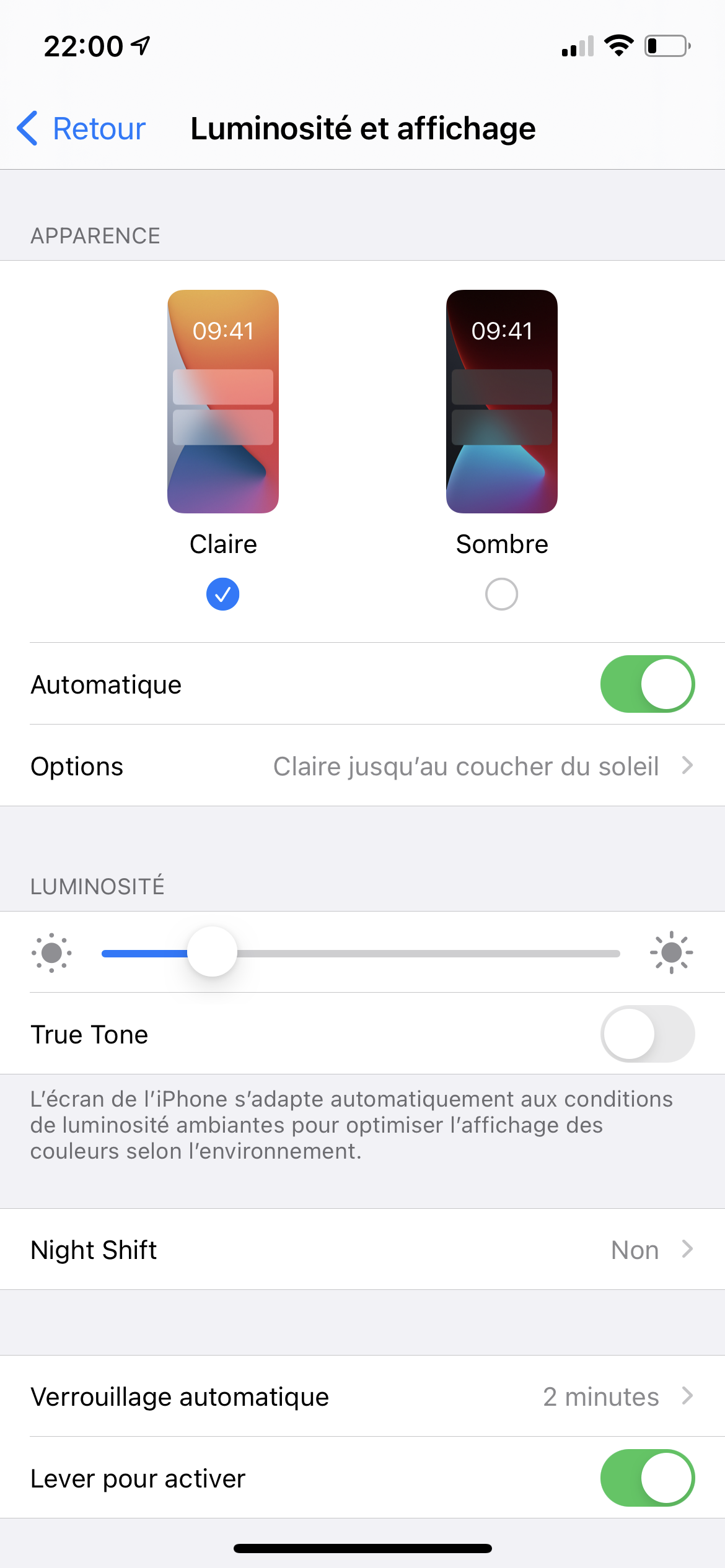 Le mode sombre iPhone ne s'active pas au coucher du soleil