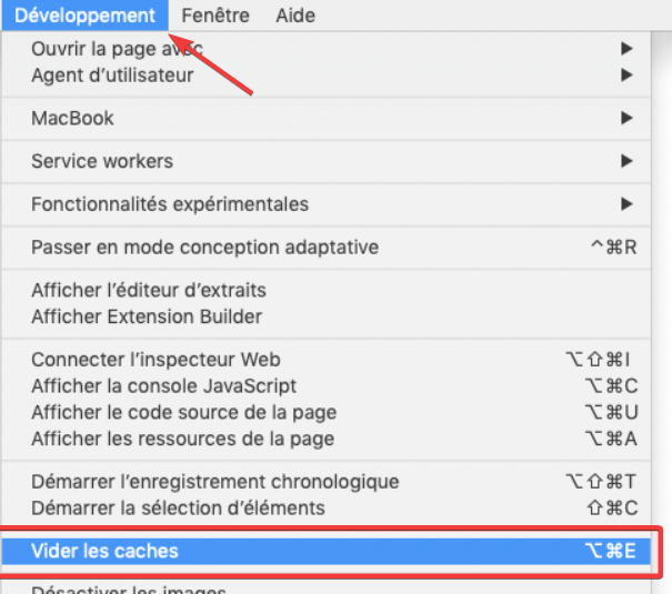 Menu Développement puis Vider le cache. > option + command + E