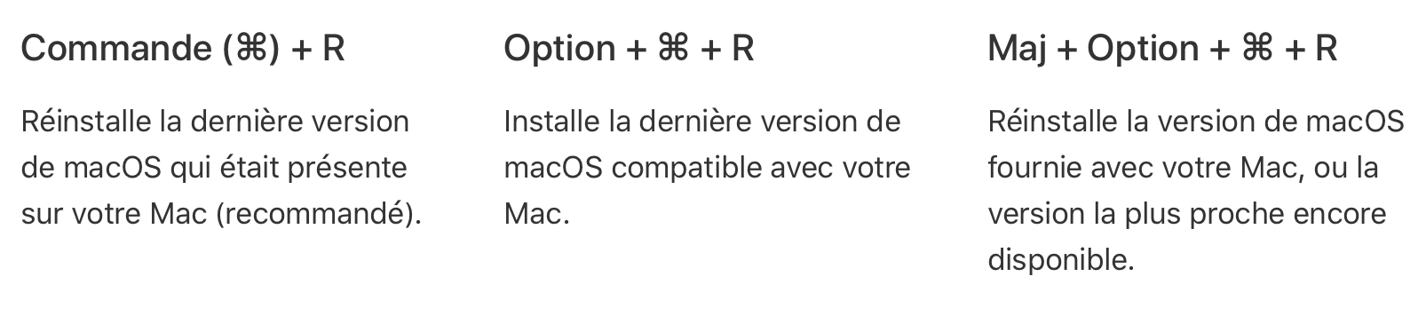 j'ai essayé toutes les combinaisons de touches proposées sur le site Apple mais rien n'y fait.