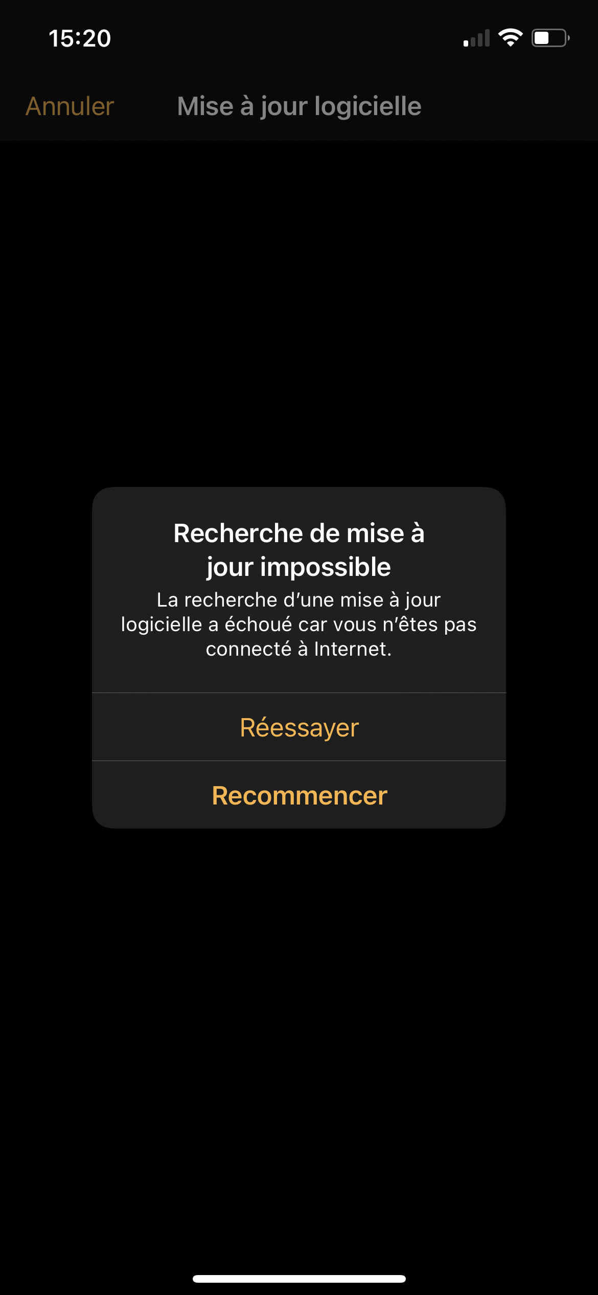 Bonjour quand je lance la connexion avec mon Apple Watch séries 3 il me demande de faire une mise à jour logiciel puis affiche un message « recherché mise à jour impossible » et pas de connexion ou autre alors de ce fait j’ai donc tester la connexion de chez moi , ma 4g , partage de connexion mais rien ne marche ce message reviens toujours et mon Apple Watch deviens inutilisable.