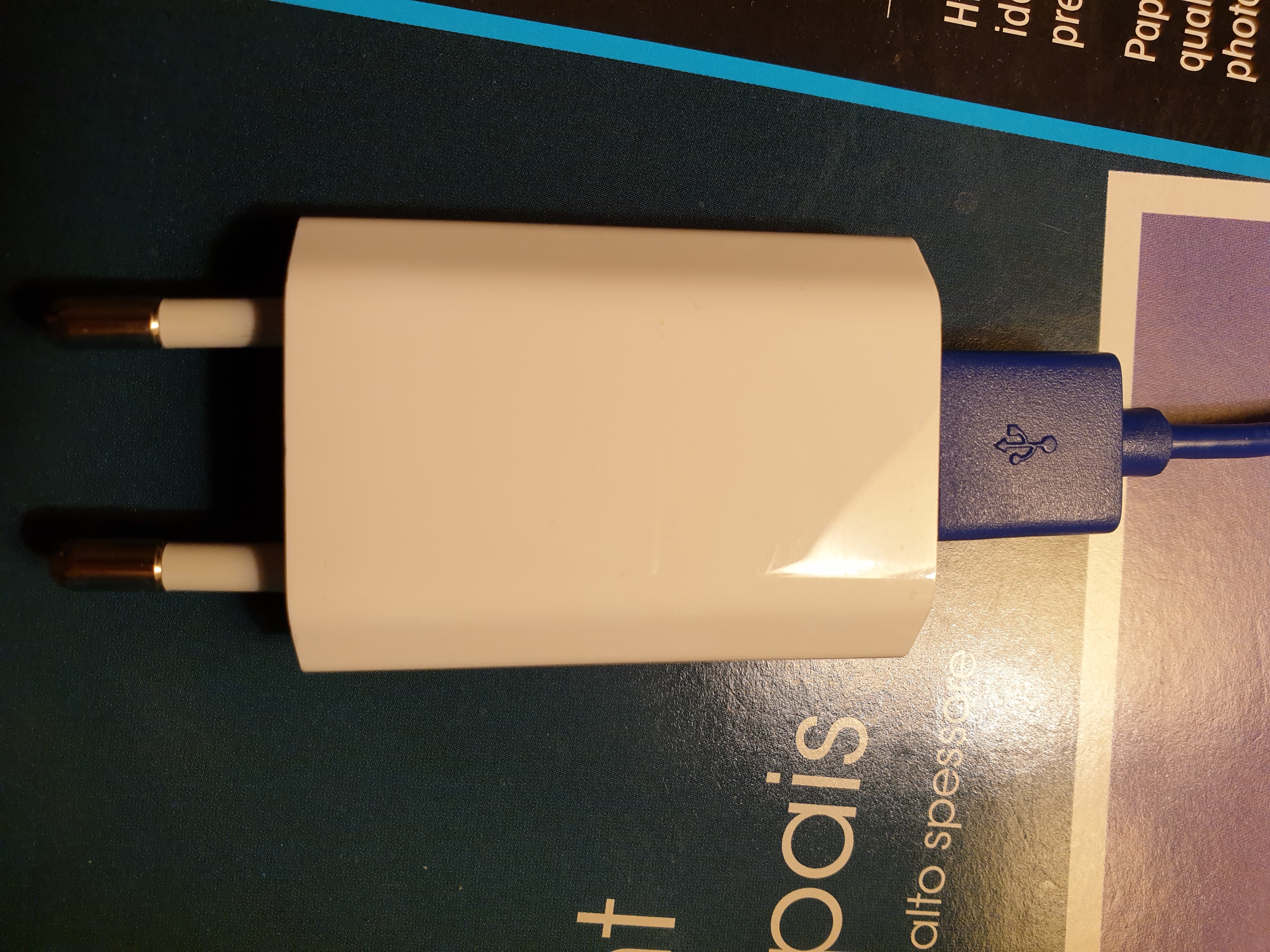 Il vous faudrait avoir un adapteur d'une dizaine de Watts minimum, comme celui-ci : https://www.apple.com/fr/shop/product/MGN03ZM/A/adaptateur-secteur-usb-12-w-apple
